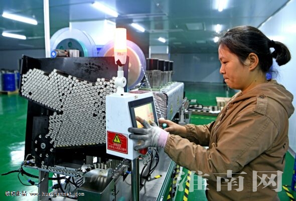 日前,凤台经济开发区双创产业园内,“凤还巢”企业安徽诺宇新能源科技有限公司工人生产圆柱型锂离子电池。近年来,凤台县不断优化营商环境,通过双创产业园建设,吸引外出务工者返乡创业、就业,积极融入长三角一体化高质量发展。(通讯员 李聪 记者 陈彬 摄)