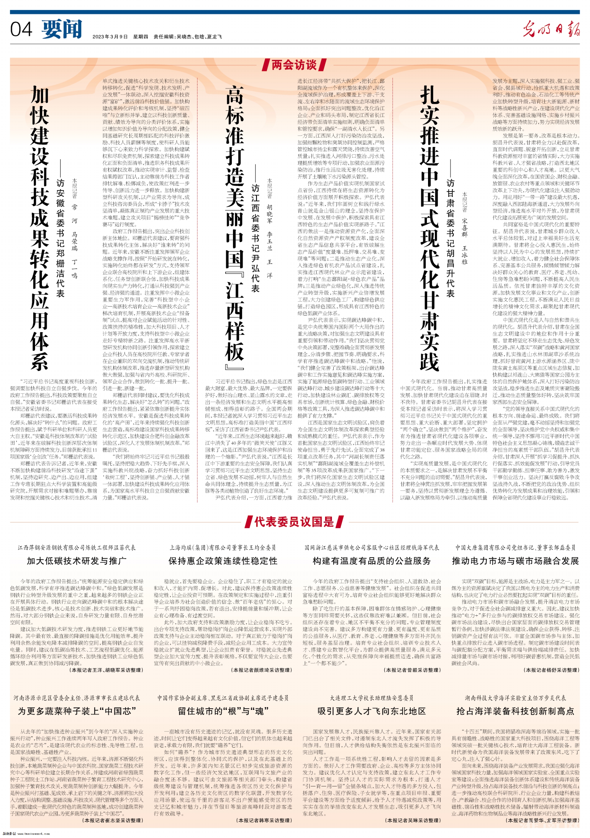 “我们将始终牢记习近平总书记殷殷嘱托,坚持把稳大趋势、下好先手棋,深入实施科教兴皖战略,奋力抓好科技创新‘栽树工程’,坚持创新链、产业链、人才链一体部署,加快建设科技成果转化应用体系,为国家高水平科技自立自强贡献安徽力量。”郑栅洁代表说。