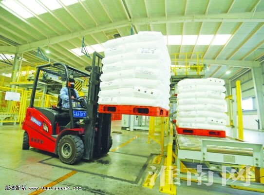近日,中安联合煤化有限责任公司聚烯烃产品包装车间一派繁忙景象。该公司主要生产煤制甲醇、聚乙烯、聚丙烯等产品,其中聚丙烯年设计产能35万吨,是主产品之一。目前,中安公司精心组织、优化操作,保持装置最优工况,确保各套装置高负荷安全运行,努力满足市场需求。(记者 倪 军 摄)