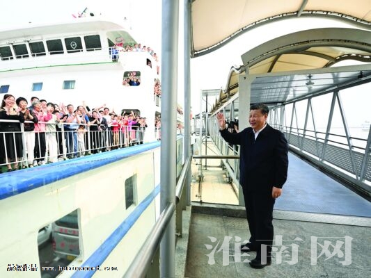 4月10日至13日,中共中央总书记、国家主席、中央军委主席习近平在广东考察。这是10日下午,习近平在湛江市徐闻县徐闻港泊位码头,向船上的旅客挥手致意。 新华社记者 燕 雁 摄