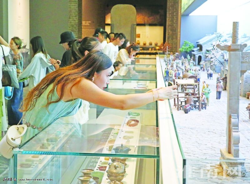 8月1日,前往安徽楚文化博物馆参观的游人如织。这个夏日,许多市民和学生选择走进博物馆,感受楚文化的魅力,追寻历史沉淀和时光的痕迹,丰富暑期生活。博物馆不仅成为越来越多市民、游客打卡地,也成为传承淮南历史文化、宣传推介淮南的重要载体。(记者 倪 军 摄)