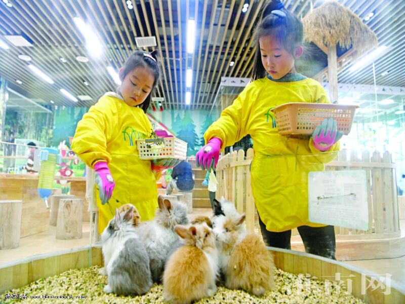 春节假期,在热闹喜庆的传统年俗之外,体验新的休闲娱乐活动成为许多人的选择。长知识、赶潮流、显个性,人们以新的方式“打开”这个龙年春节,留下属于自己的独特记忆。图为2月16日,小朋友在我市一家商场内的动物园为小兔子喂食。(记者 陈彬 摄)