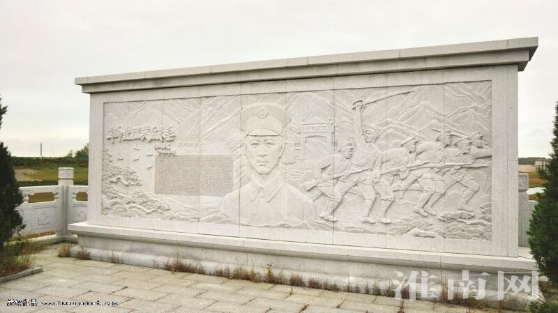 图:茅延桢烈士墓西侧的大理石浮雕墙,上刻有烈士头像浮雕、生平简介和徐向前元帅题词“革命先烈,英名永垂”。(记者 张明星 尚家起 摄影报道)