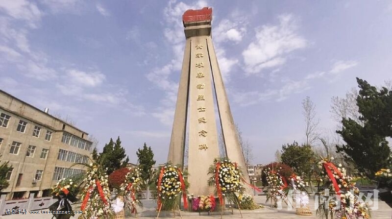 在黄坝社区居民聚集区,静静地矗立着一座黄家坝暴动烈士纪念碑,纪念碑两边支架像两把大刀,中间的碑体似一把长矛,顶部红色石块像燃烧的火焰,这既反映出当时暴动的情景,也是纪念碑的独特之处。