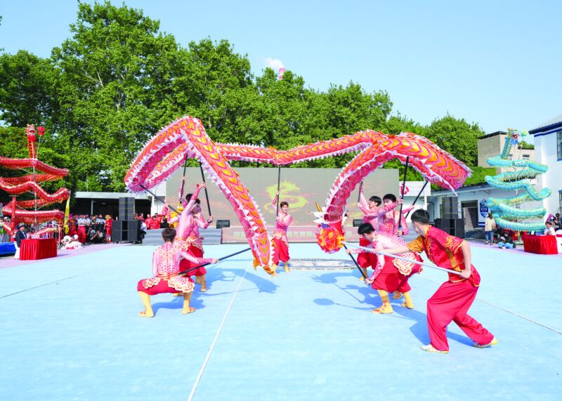 马来西亚入境旅游团游客在寿县古城欣赏非遗项目寿州大鼓表演。