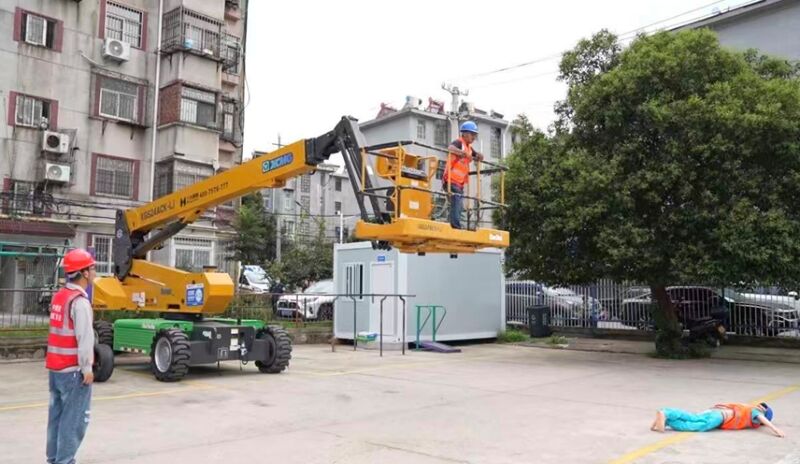 (记者 李严 摄影报道)随着城镇老旧小区改造工程全面推进,高处作业量显著增加,曲臂车等高空设备应用日益广泛,安全风险防控成为重中之重。为切实提升老旧小区改造项目中高处作业的安全管理水平与突发事故应急处置能力,近日,田家庵区在洞泉小区一处曲臂车作业点,组织开展了一场模拟高处坠落事故的实战应急演练。