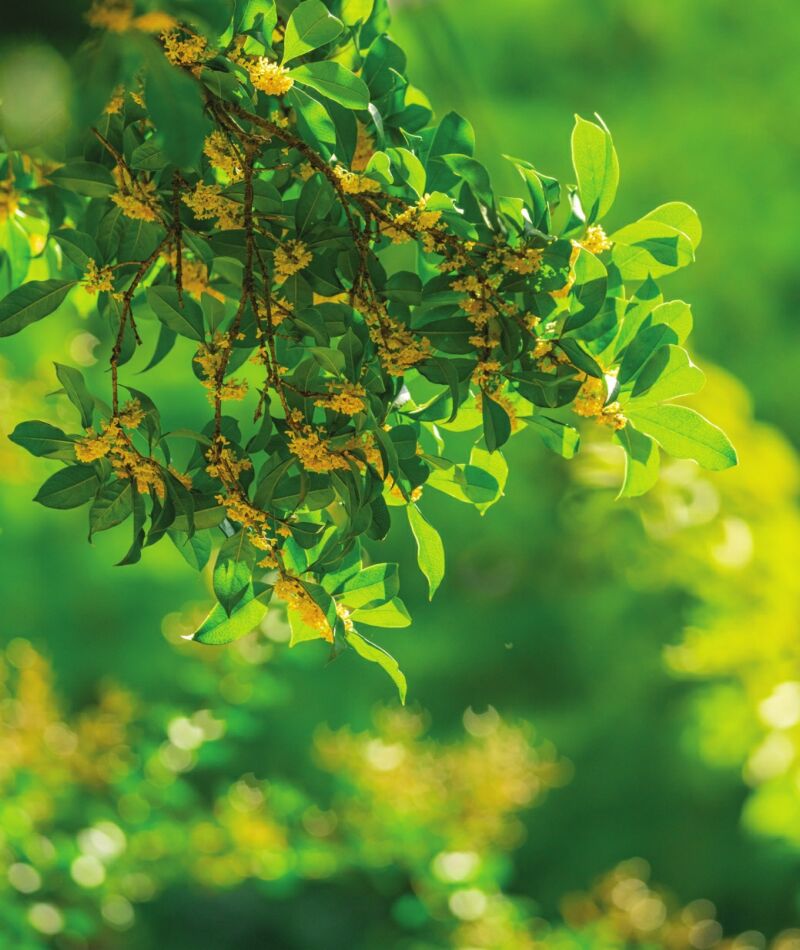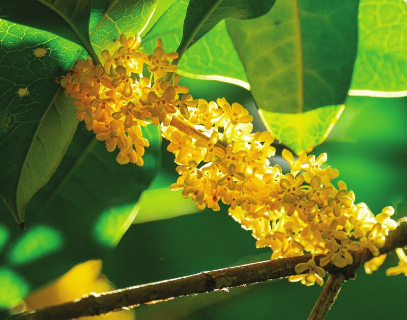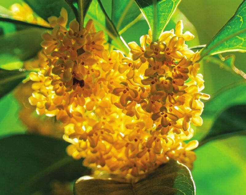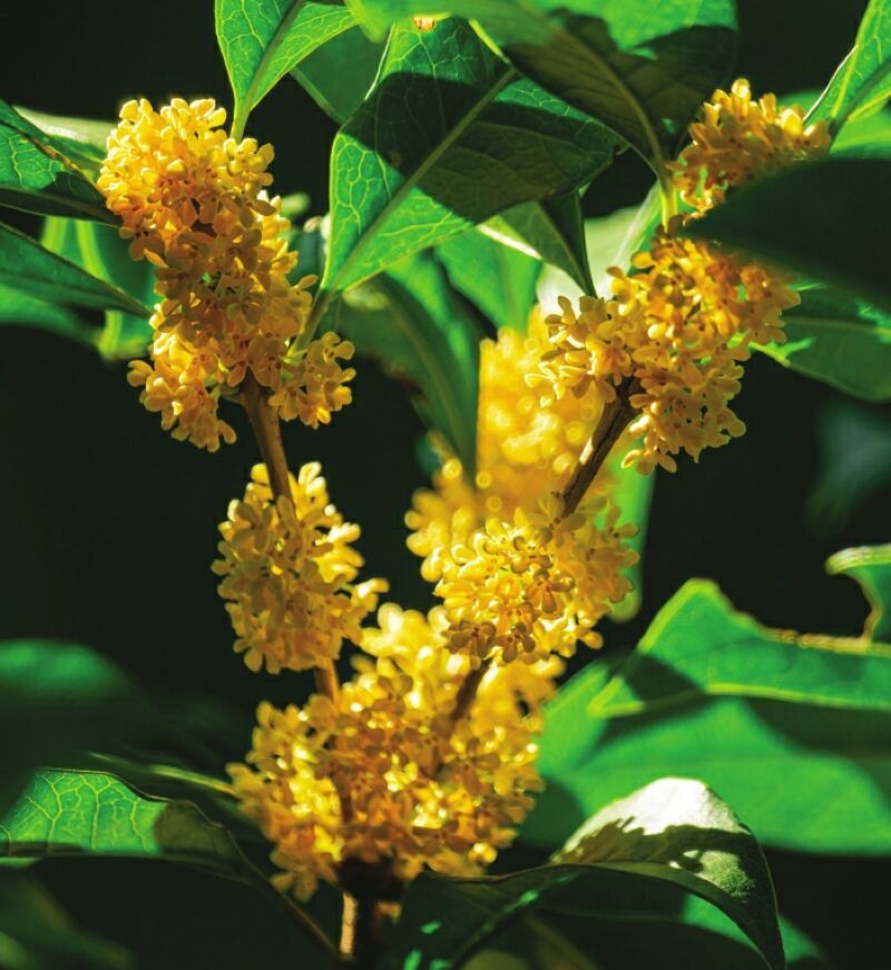淮南的秋分“花代”——桂花又名木樨,是木樨科木樨属常绿乔木或灌木。桂花成簇缀于绿叶之间,花瓣仅米粒大小,却薄如蝉翼,在阳光下呈现出碎金质感。桂花香气穿透力强,弥漫在秋日空气中,能够香飘十里。淮南栽植桂树历史悠久,北宋乐史《太平御览·木部》引东汉王逸《楚辞章句》:“汉淮南王安,好道,感八公,共登山攀桂树。安作诗曰:攀桂树兮聊淹留。”刘安所作即《招隐士》,诗中吟咏了八公山幽谷中的桂花。唐代诗人李白痴迷淮南桂,两次来淮南,四次赋诗赞淮南桂树、桂枝和丹桂。如今淮南遍植桂树,媒体报道过的秋分赏桂胜地有八公山、舜耕山风景区、寿县新城区、焦岗湖、大通湿地公园、龙湖公园、人民公园、老龙眼湿地,为此特将桂花确定为秋分时节的淮南代表性花卉。