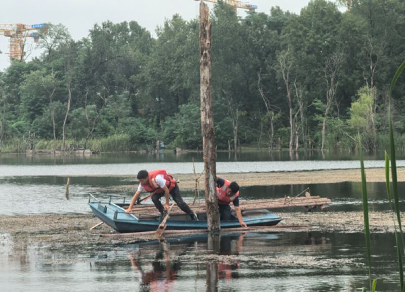 这一情况迅速得到了相关部门的重视。在爱鸟协会的呼吁下,市渔政执法大队、淮南旅游发展有限公司等单位积极响应,迅速联动。行动当日,各部门工作人员通力合作,将十余条崭新的竹排稳稳地固定在湖面适宜位置。这些竹排不仅为鸳鸯提供了稳固、安全的栖息点,也与湖光山色自然融合,成为一道新的人文生态景观。