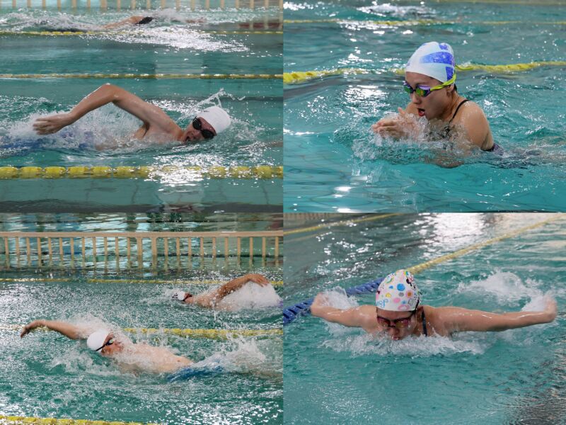 9月28日,市十运会游泳比赛在市体育中心游泳馆开赛。来自群体部和青少部的近200名运动员参加了各项目的争夺。图为群体部4个泳姿的比赛场景。