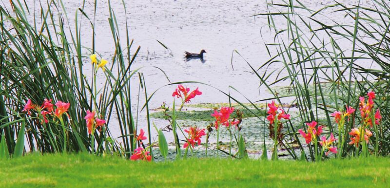 夏日的余温在秋分时节悄然退去,山南如意公园池塘岸边的美人蕉却依旧热烈绽放,仿佛未曾经历酷暑的煎熬。它们挺立水畔,红艳如炬,映着粼粼波光,分外夺目,为渐凉的秋色添上一笔浓烈的诗意。