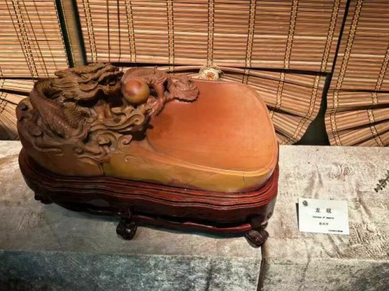 从寿州窑展示区走出,游客便可踏入另一座非遗艺术殿堂——紫金砚石陈列馆。馆内藏有“中国雕砚第一人”方见尘的雕砚精品,还有省级非物质文化遗产项目代表性传承人路福传的《黄龙戏珠》《嫦娥奔月》《青龙印》等紫金砚雕代表作。每一方砚台都凝聚着刀笔匠心,每一道纹路都诉说着非遗技艺的千年传承。