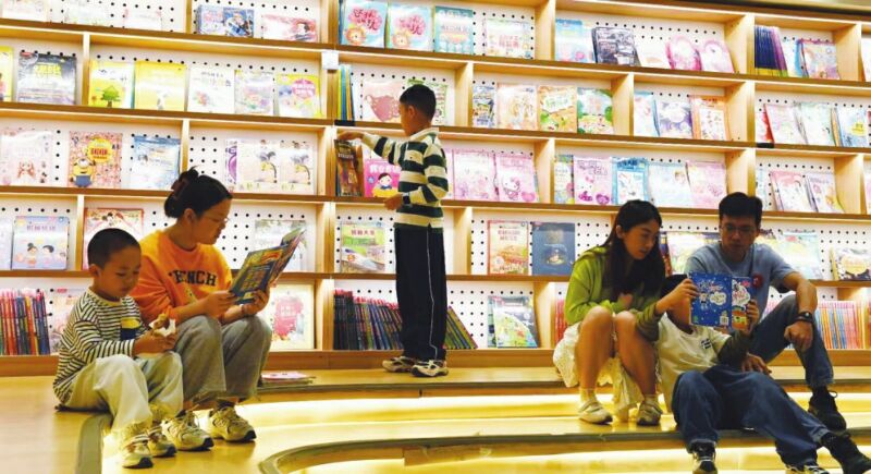国庆假期,不少家长陪同孩子走进新华书店,阅读学习,品味书香。