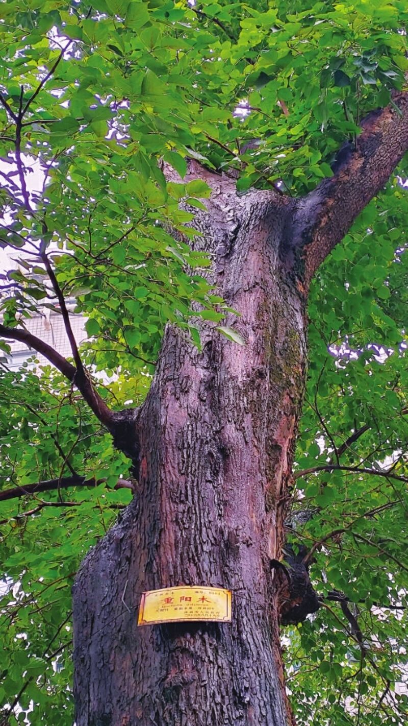 深闺中的重阳木,承载着几代人的美好记忆。在田家庵区洞山街道南山村小区内,矗立着67棵树龄达79年的重阳木。它们高耸入云,树高逾30米,树姿优雅,树冠如伞盖般舒展。79年来,两排高大的重阳木默默见证了这片土地翻天覆地的变迁,成为几代人相知相伴的珍贵见证。