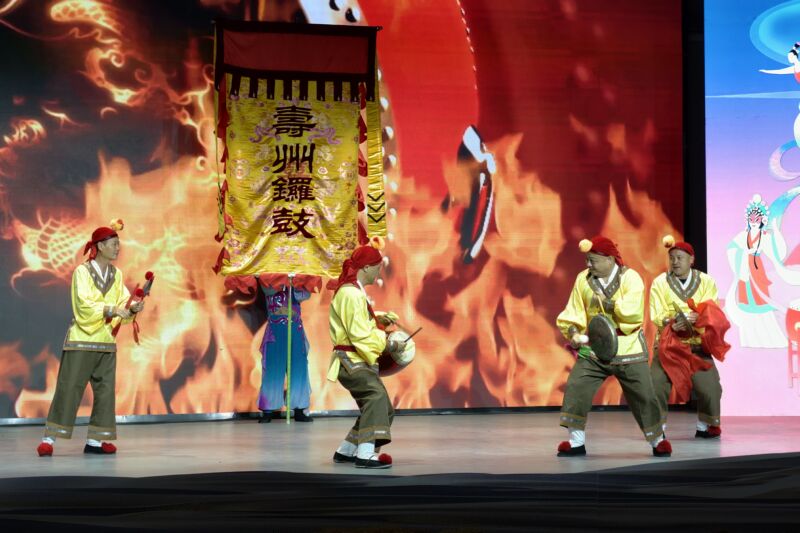 整场演出地方特色浓郁。省级非遗寿州锣鼓《喜鹊登枝》气势磅礴,国家级非遗花鼓灯《扇风》灵动欢快,好戏相继登场,集中展示了淮南深厚的文化底蕴。