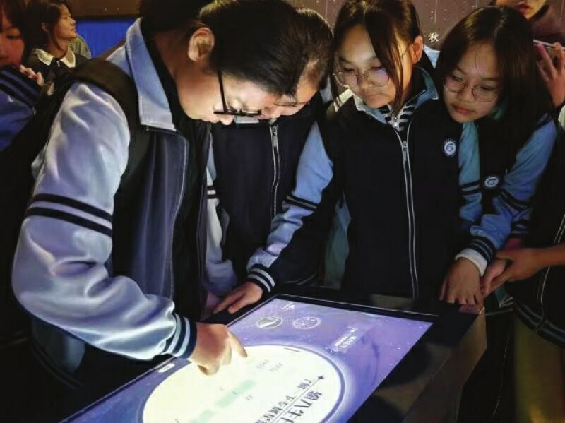 二十四节气馆内,学生们围在“节气农事互动屏”前,跟着动画演示模拟春耕、夏耘的流程。在寿县国家气候观象台,40名学生在观测员的指导下,尝试读取气温、湿度数据,将书本理论转化为可操作的实践体验。