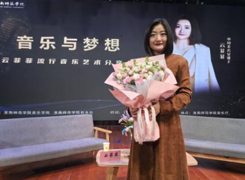 镁光灯下,一袭棕色连衣裙的云菲菲微笑着望向台下那些年轻而热切的眼睛。11月5日在淮南师范学院音乐厅,近400名大学生与云菲菲共度了一场看似演唱会、实则远不止于此的分享会。这不是一场普通的演唱会,而是一次灵魂的返乡——一位从淮河岸边走向全国的歌者,带着她的音乐与梦想,回到了滋养她的土地。