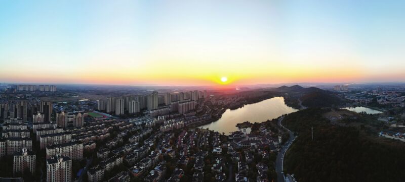 在冬日暖阳的照耀下,泉山湖畔,远山如黛,色彩斑斓,飞鸟翩翩翱翔于天际。远眺湖面,水光潋滟,与蔚蓝的天空交相辉映,宛如一幅自然生态画卷。