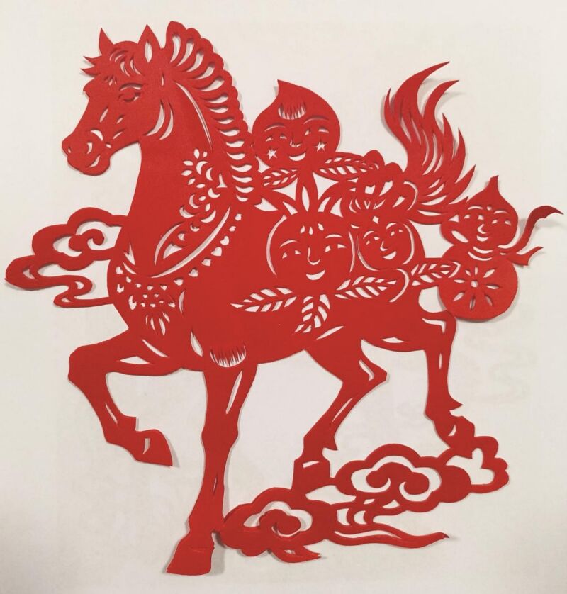 这匹剪纸马造型雄健灵动,线条婉转流畅,祥云舒展飘逸,既保留了淮南剪纸细腻秀美的独特风格,又洋溢着新时代的蓬勃生机。