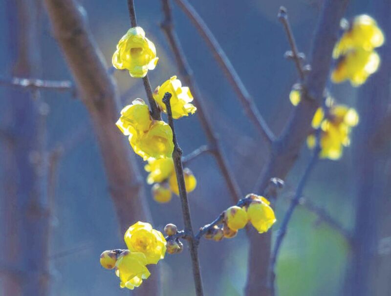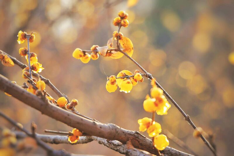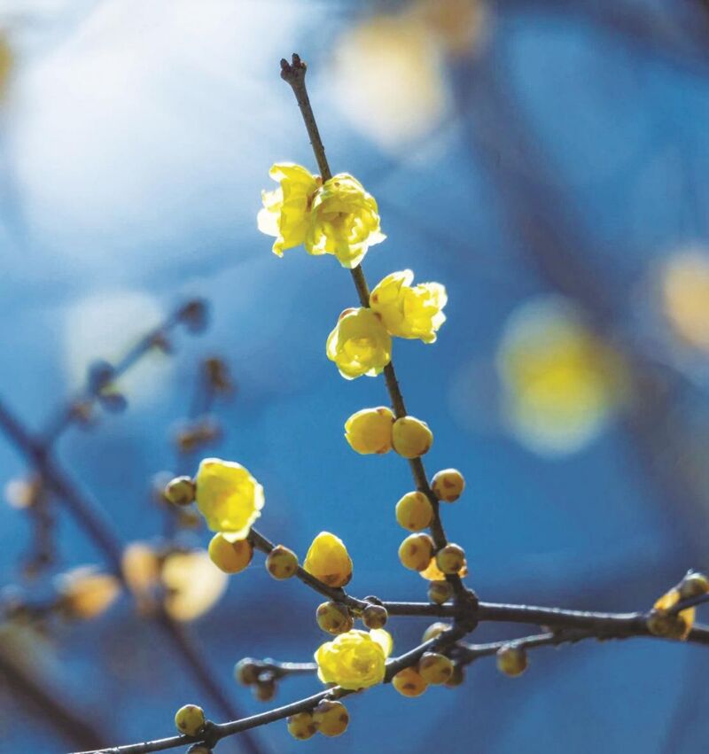 图为淮南舜耕山梅园里,金黄蜡梅迎寒盛开。