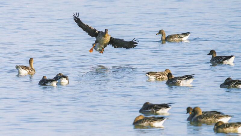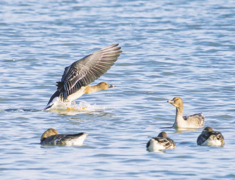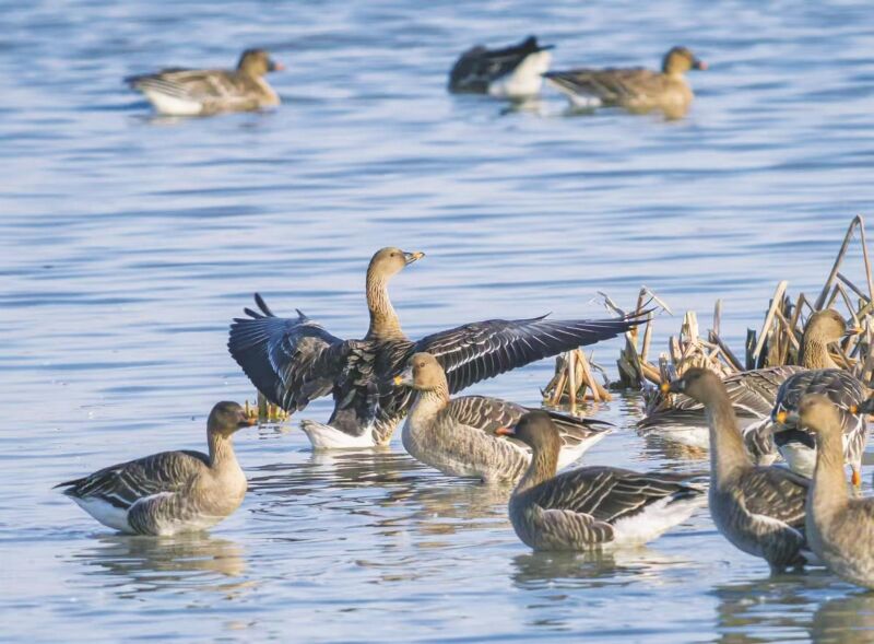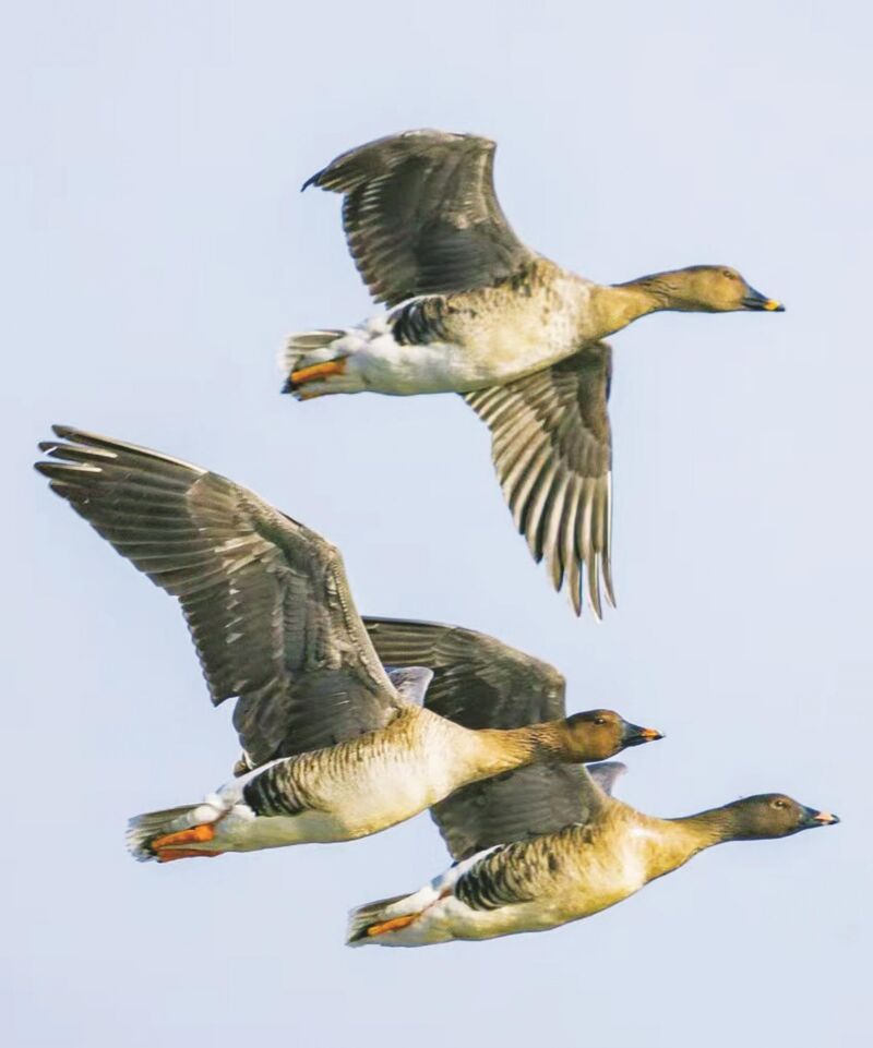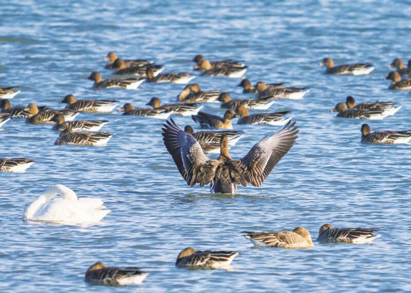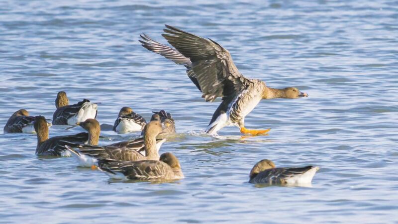 1月13日,大通蔡城塘水面之上,一群大雁翩跹起舞,它们沐浴在阳光下,时而低头觅食,时而展翅飞翔,时而嬉戏打闹,羽翼掠过粼粼波光,姿态灵动洒脱,为冬日的宁静水面增添了无限生机,尽显自然生态之美。