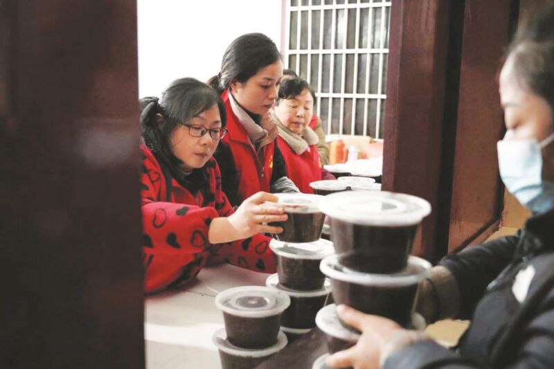 1月26日,在寿县报恩禅寺里,义工们将一碗碗爱心满满的腊八粥稳稳地递给排队的人们。一声声 “谢谢”,一张张笑脸,让简单的一碗粥,成了腊八节里最动人的风景。报恩禅寺的腊八施粥活动,不仅是千年古刹善意的传承,更是寿州古城独有的冬日温情,让寒冷的清晨因这份温暖而格外美好。(通讯员 朱勉 摄)