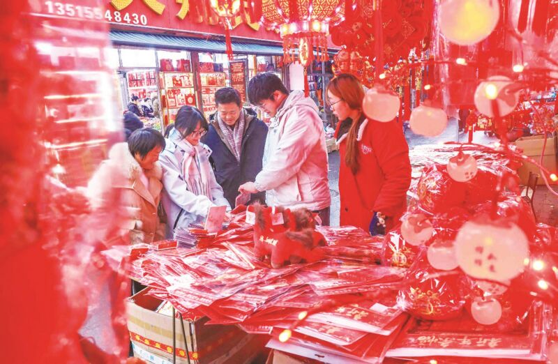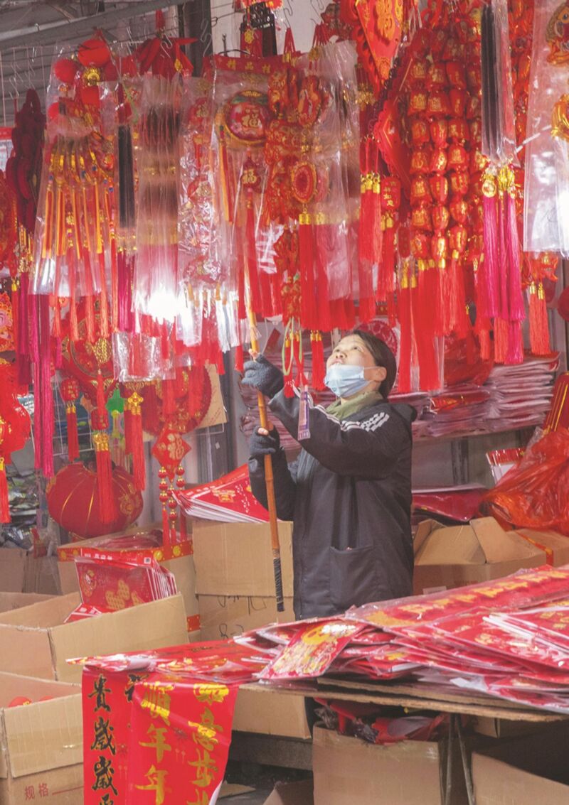腊月已至,冬日的暖阳为淮南东城市场镀上一层淡金。步入其中,视线顷刻被铺天盖地的“新年红”淹没——高悬的大红灯笼、满墙的春联福字、摇曳的中国结,将整条街巷装点得热烈而喜庆。在这喧闹而温暖的市集里,农历新年的轮廓正被一点点描摹清晰,生动地铺展在每个人眼前。