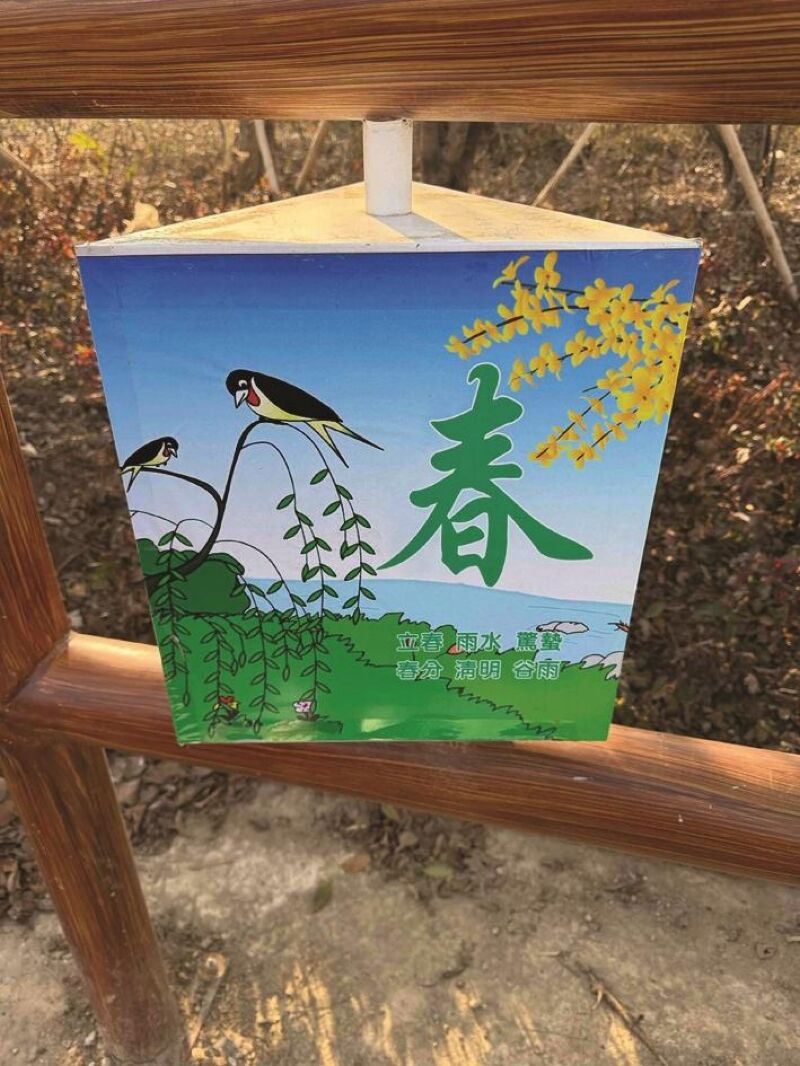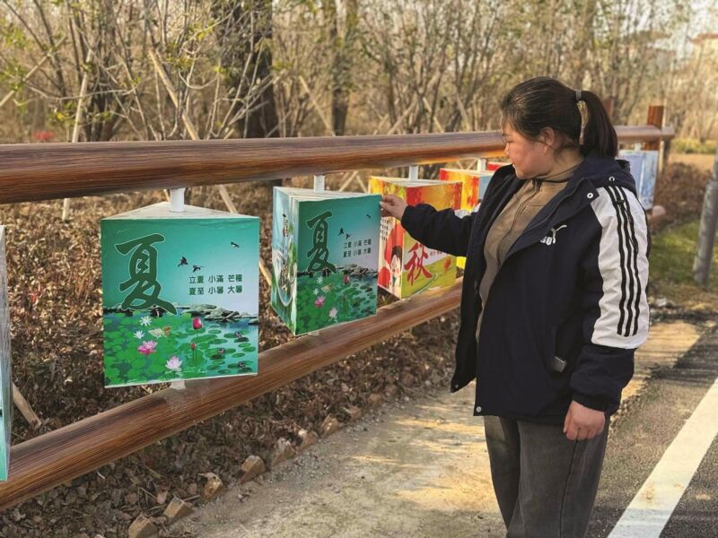 “大寒过了就是立春……”近日,田家庵石头埠村的一位村民在《淮南子》节气科普慢行廊边看边说。立春、雨水、惊蛰……二十四幅田园小画展示在村口的栏杆上,形成一条露天的文化长廊,于步道旁搭建起一个微型的“节气课堂”,让村民在漫步健身之余,能直观感受时节流转的韵律与中国传统文化的魅力。