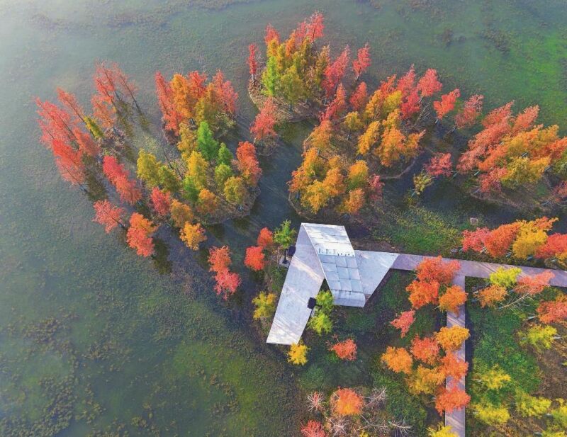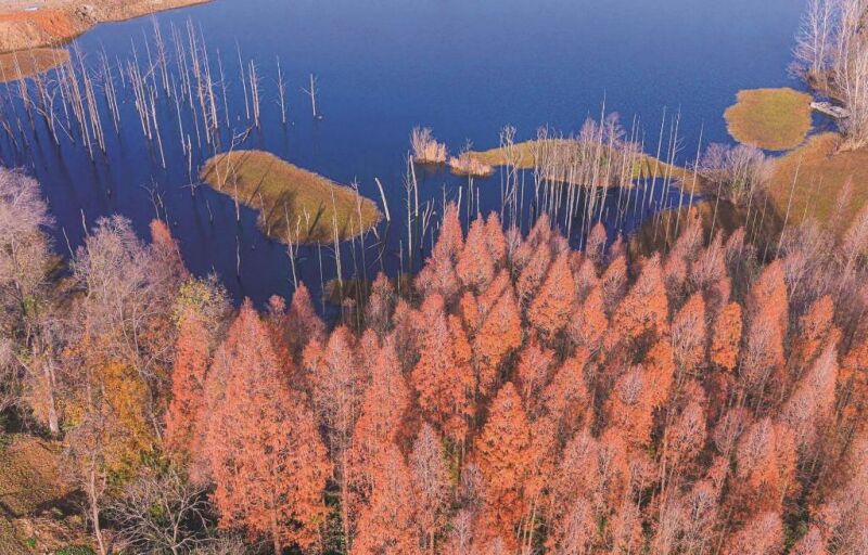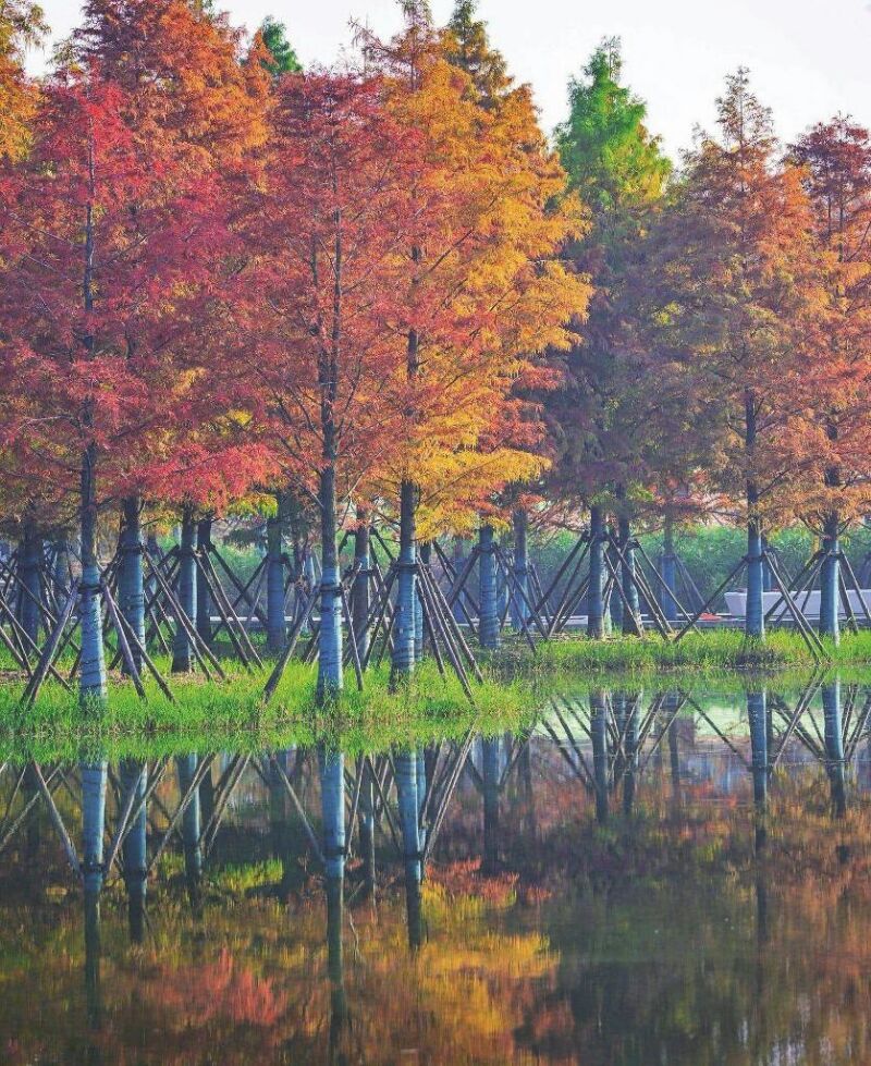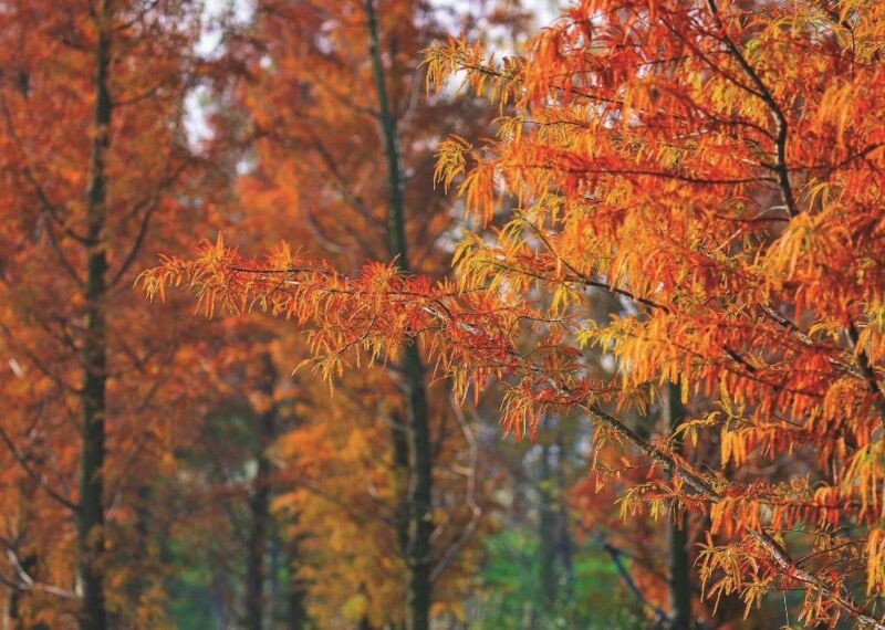打卡杉林童话世界——杉树树形挺拔,树冠飘逸,笔直的树干刺破天际。阳光穿过枝叶缝隙,在地面洒下点点光斑,漫步杉林,犹如置身童话世界。淮南杉林遍布,有两处尤为值得打卡:春申湖公园东侧杉林绵延数里,由水杉、池杉、落羽杉构成。徜徉在蜿蜒的木质栈道上,观赏倒映在清澈湖面上的杉影,赤橙黄绿青蓝紫,湖面被染上绚烂色彩,“水上森林”的绝美景色别有意蕴,令人流连忘返;九龙岗矿东村附近藏有一片数十亩的小杉林,曾被网友戏称为淮南最后一片原始森林。茂密的杉树遮天蔽日,形成一个天然的绿色穹顶,阳光像碎钻般从叶隙间洒落,青藤缠绕着高耸的树干,进入森林小径,犹如进入梦幻世界,感受到一种与世隔绝的宁静……
