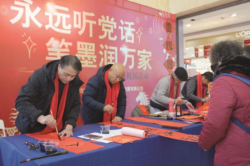 为弘扬传统文化,营造喜庆氛围,2月8日下午,市硬笔书法协会组织书法家在淮南百大商厦开展“迎新春 送春联”公益活动。书法家们现场挥毫,写就一副副对联,把浓浓的年味和美好的新春祝福送到市民手上,受到大家一致好评。