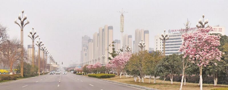 春风拂过淮南高新区,将这里染成一片斑斓的花海。洛河大道与和畅街上,红白相间的玉兰花亭亭玉立;人民公园湖畔,垂柳依依,绿意婆娑。而在未开发的土地上,金黄的菜花与错落的楼宇交织相映,构成一幅春日里别样的城市画卷。