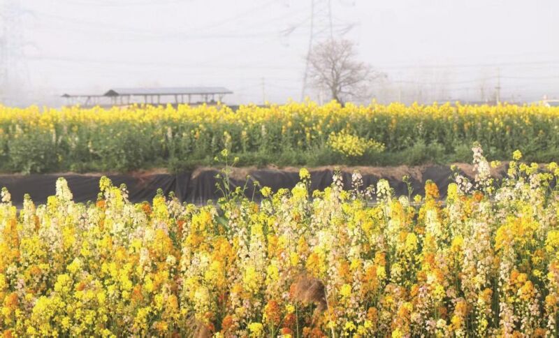 春到蔡城塘,古水利工程之畔,五彩油菜花绚烂绽放。金黄、粉白错落交织,与清澈的水面相映成趣。这里不仅鱼肥水美,更绘就了一幅生态优先、景色宜人的春日画卷。