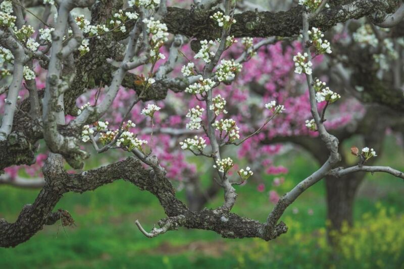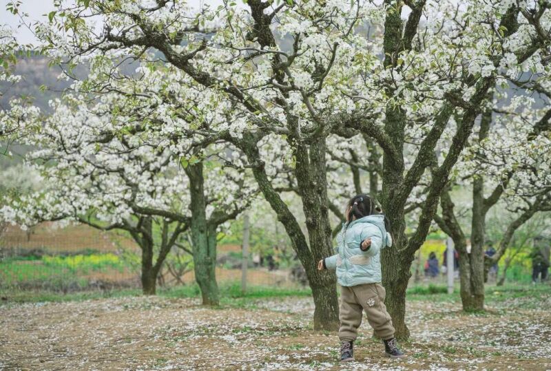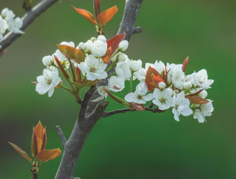 淮南的清明“树代”——梨树是蔷薇科梨属乔木植物,原产中国,大约3000年前,人们就掌握了梨树嫁接技术,使梨子成为鲜美的水果,《诗经·召南·甘棠》所咏的“甘棠”就是梨树的品种之一棠梨。《淮南子·说林训》“梨、橘、枣、栗不同味,而皆调于口”的记载说明,梨子在西汉就是淮南百姓喜食的果品之一。如今梨树被淮南市确定为造林绿化经济林推荐树种,各县区几乎都有大面积的成片梨园,具有代表性的品种有翠玉梨、翠冠梨、秋月梨、黄晶梨、酥梨等。梨树树姿优美,花朵洁白,硕果芳香,使得梨园也由经济林蜕变为风景区,寿县郝家圩万亩梨园、大通区百年梨园、八公山区梨花海都已成为远近知名的旅游打卡点。四月之初,“千树万树梨花开”,梨园游客爆棚,梨树当然成为清明时节的淮南代表性树种。