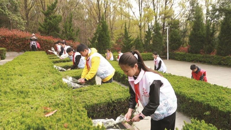 活动现场庄严肃穆,全体人员整齐列队、神情凝重。在烈士纪念碑前,全体人员肃立默哀,向为民族独立、人民解放和国家富强英勇献身的革命烈士,致以最崇高的敬意与最深切的缅怀。随后,全体人员依次缓步绕行纪念碑,细心擦拭墓碑、虔诚敬献鲜花,深情瞻仰烈士纪念碑,以朴素庄重的方式寄托哀思,告慰英烈忠魂。