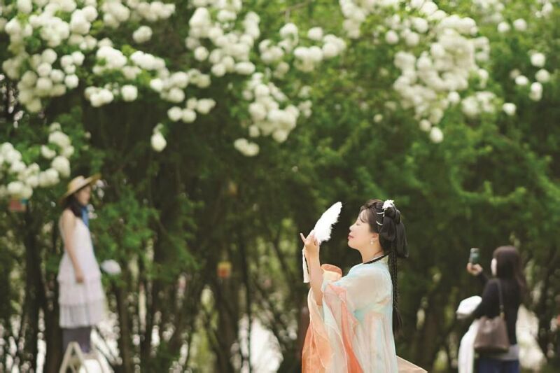 琴瑟和鸣处,绣球花正开。淮南高新区“两琴相悦”地标旁,绣球花如期盛开,团团簇拥,洁白如云。钢琴与小提琴建筑静立花旁,仿佛奏响无声的春日恋歌。游人漫步其间,笑语与花色相映。这份限定的浪漫美景,正等你入镜收藏。