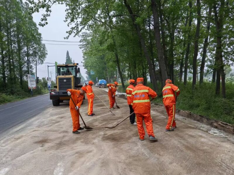 (记者 查嘉琪 通讯员 胡光耀 摄影报道)4月16日,S102合阜路凤台段发生一起车辆交通事故,车上装载的工业原料大面积洒落路面,导致路面湿滑,形成重大交通安全隐患。市公路管理服务中心凤台分中心第一时间启动应急响应,高效完成隐患处置工作,全力保障公路安全畅通,切实守护群众出行安全。