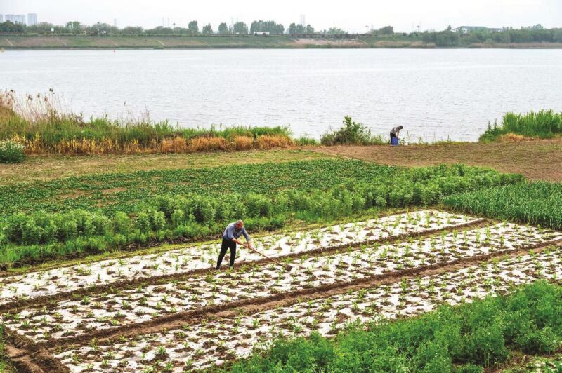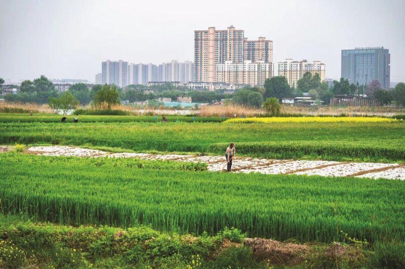 淮河岸畔,万物都在生长。青苗在春雨里拔节,“淮河之光”大桥桥墩在晨光中日日崛起。农人弯腰耕耘的身影,与塔吊下浇筑的桥墩遥遥相对,千年农耕的脉搏,正与城市建设的节拍同频共振。谷雨时节的土地上,传统与新生在春风里共生:一种向着土地扎根,向着丰收生长;一种向着远方延伸,向着天际崛起。