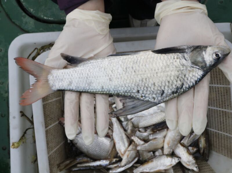 在八公山李咀村附近河段的监测作业中,工作人员采集到一尾体长近30厘米的淮王鱼。淮王鱼被誉为“淮河珍宝”,是淮河流域极具代表性的特色水产品种,淮王鱼国家级水产种质资源保护区也正是为保护这一珍稀物种设立。此外,在凤台二桥、九里湾、李咀孜等监测点位,还发现了10多条尾鳍泛红的似刺鳊鮈。协助开展监测的护渔员介绍,该鱼种此前从未在淮河流域出现,近几年才逐渐被发现,以往监测到的个体体型小、数量少,今年是首次观测到体型大、种群数量较多的似刺鳊鮈。经查阅资料,似刺鳊鮈主要分布在长江中下游水域,此次现身淮河,大概率是“引江济淮”工程实现水域连通后,该鱼种从长江流域洄游至淮河。作为对水质要求极高的鱼种,似刺鳊鮈对水体环境变化十分敏感,一旦水质恶化便无法生存,其种群数量的增加,从侧面充分印证了淮河水环境质量持续优化。