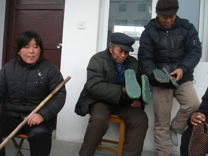 今年区民政局又为聂道美送去了200元的救济款,可聂道美却没有用这200元为自家添置年货,而是做了10多双棉鞋想要送给敬老院的老人们。“因为双眼看不见,我只能每天听电视,听到敬老院的老人无儿无女的,我的心里就难受,就想着能够为他们送去些温暖。可我又没钱,根本没办法送什么好东西,所以就想着老人肯定需要穿棉鞋,我就把区民政局给的200元钱买了布和鞋底,做双鞋子送给孤寡老人,让他们也感受到温暖。”聂道美抚摸着自己做的棉鞋羞涩地说。