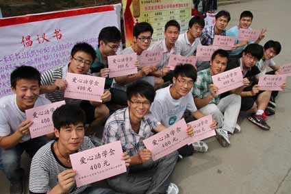 6月16日下午,在校园的林荫道上,安徽理工大学电气学院的大学生们正在忙碌着。“同学们,请为山区的孩子献上一份爱心吧。”随着时间的推移,他们的眼前堆起了一摞摞内容丰富的课外书籍,也募捐了整整5600元的慈善款,由衷的笑容映上了他们的脸颊(如图)。大学生志愿者孙立伟同学说:“去年暑假,我们去的岳西县温泉辅导小学和步文友谊希望小学,认识了那里的孩子后,我们一直记挂着他们。今年暑假,我们又要去那支教了,希望我们募捐的钱物能改善他们的生活,丰富他们的课余生活。”