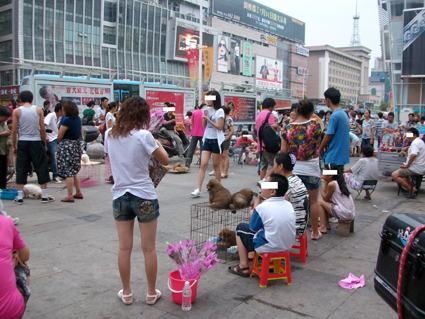 今年夏季以来,由于狗贩越聚越多,一定程度上造成了道路拥堵,为了缓解这种压力,五中队通过各方式加强宣传教育,要求狗贩把车辆、狗笼子等停放到合适地点。同时,地下商业街地下通道外出口、商贸南出口石球处等主要人流通道坚决不让摆摊。竭力将狗市控制在更小的范围内。