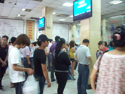 图:淮南站售票厅排满了前来购票的市民