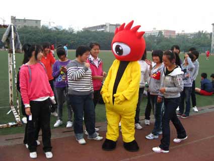 经过一番询问后记者得知,原来由于这个周末正值该校各个学生社团集中开展一年一度的招新活动,该校成立的安徽高校首个微博协会别出心裁,在招新宣传过程中与淮南新浪乐居合作,首次把深受90后大学生喜爱的新浪微博吉祥物“小浪 人”请进了大学校园。而“小浪人”每到一处,都能制造阵阵笑声(如图)。