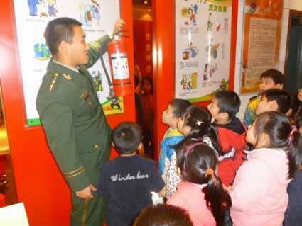 11月7日下午,在第21个全国消防日来临之际,乐嘟嘟龙眼村幼儿园的小朋友们走进淮南市消防支队特勤中队,在消防员叔叔的介绍下,小朋友们见识到各种消防车、消防器材,并登上消防车、戴上消防帽当了一回“小小消防员”。同时,消防员叔叔还带领小朋友观看了消防宣传展板并进行了火灾模拟演习。