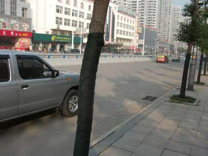 细心的市民会发现,这几天,广场路两边的一些绿化树的树干上包裹了一层布状的东西,原来这是为树木过冬而穿上的新型“冬衣”。