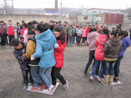 图:学生们在玩游戏。