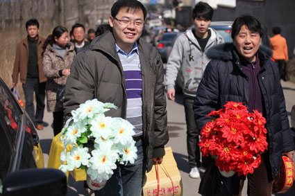 3月27日,祭祖扫墓的路上人山人海,从四面八方赶来的人们集聚在这里,进行“祭之以礼”的追思活动。图为通往罗山公墓的路上市民们前去祭祖的情景。