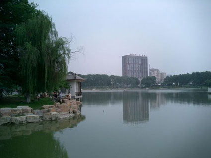 图为龙湖公园、人民医院遥相呼应,见证了淮南几十年来的变化。(资料图)