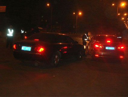 图一:记者不久前跟随交警部门夜间查车所摄情景