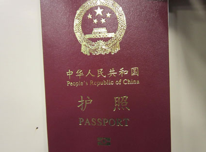 图:电子护照样证,护照下方为嵌入的电子芯片。