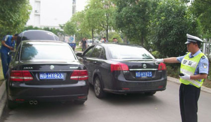 5月30日上午,车牌号码为皖DHY823的别克轿车车主张先生来到中都华府小区内,一辆停放在路边的帕萨特轿车引起张先生的注意,仔细一看原来该车牌号码竟然和张先生的车牌号码一模一样,这不就是套牌车吗?张先生气愤之下,立刻报警。接到报警的淮南市公安交通管理局田家庵二大队机动中队民警赶到现场,并想尽办法与车主取得联系,可车主崔某拒不承认自己是车主,也不愿意到停车场打开车门。民警在告知车主的情况下,利用技术手段打开车门,在套牌帕萨特轿车的后备箱内找到该车的真正车牌,车牌号为皖DD7826。这时车主崔某才匆匆赶到停车场,向民警承认了违法事实,并向别克牌轿车车主张先生道歉。